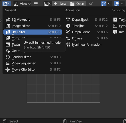 그리고 좌측아래 창의 오른쪽 위 아이콘을 클릭후 UV Editor를 클릭한다.