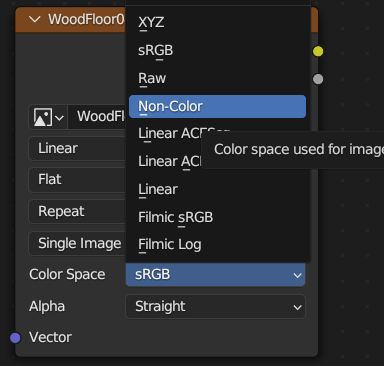 Roughness Map은 색상이 없는 Map이므로 Color Space을 non-color로 선택한다.